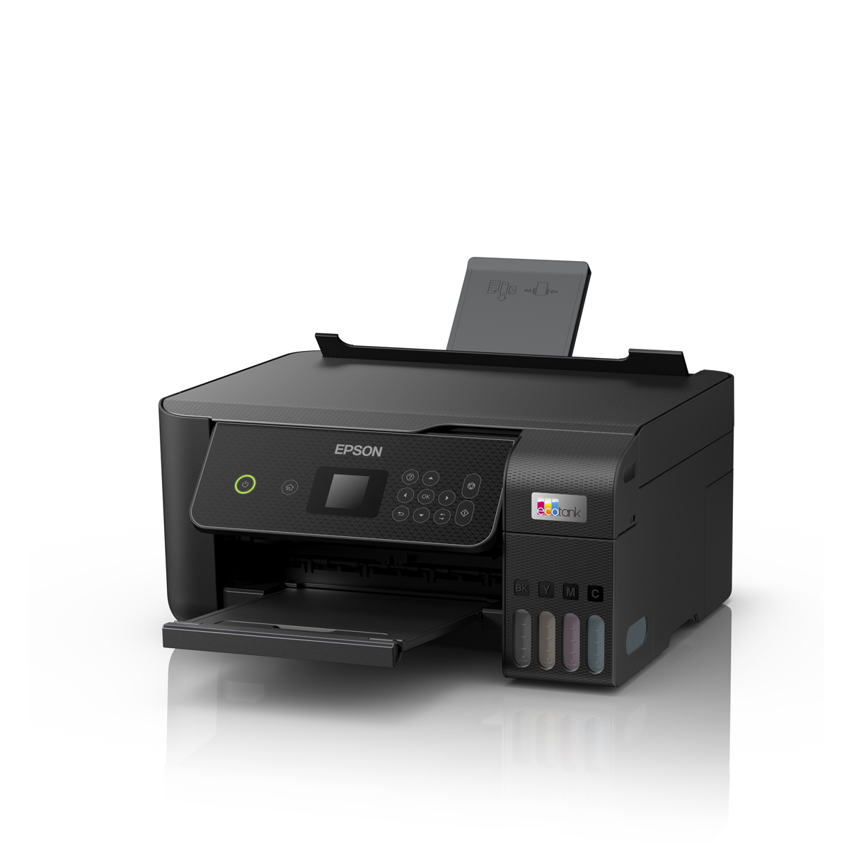 EcoTank ermöglicht komfortables Drucken zu Hause. Die großvolumigen Tintentanks ermöglichen ein unkompliziertes Nachfüllen. Da die Tintenflaschen über ein Schlüssel-Schloss-Prinzip funktionieren, kann nur die jeweils richtige Tinte eingefüllt werden. An der vorderen Tintenfüllstandsanzeige können Sie leicht erkennen, wann Sie den Drucker nachfüllen müssen.