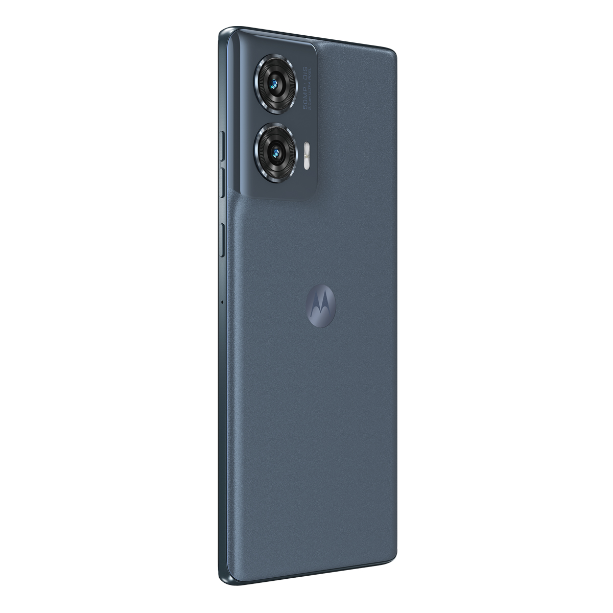 Mit seinen abgerundeten Kanten, weichen Konturen und dem nahtlos integrierten Kameragehäuse liegt das ultraflache motorola edge 50 fusion angenehm in deiner Hand. Wähle ein Finish aus veganem Kunstwildleder in Hot Pink oder veganem Kunstleder in Marshmallow Blue Oder entscheide dich für ein edles mattes Finish in Forest Blue.