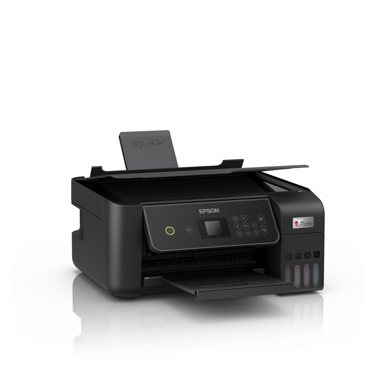 EcoTank ermöglicht komfortables Drucken zu Hause. Die großvolumigen Tintentanks ermöglichen ein unkompliziertes Nachfüllen. Da die Tintenflaschen über ein Schlüssel-Schloss-Prinzip funktionieren, kann nur die jeweils richtige Tinte eingefüllt werden. An der vorderen Tintenfüllstandsanzeige können Sie leicht erkennen, wann Sie den Drucker nachfüllen müssen.