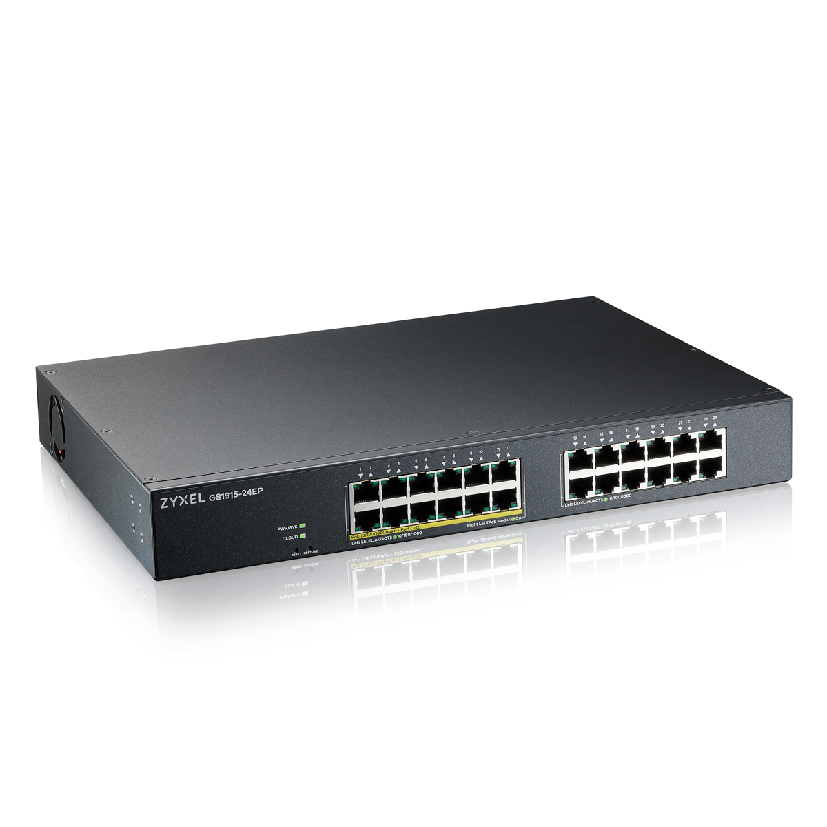 Die GS1915 Serie umfasst zwei Switches mit bis zu 24 Ports mit oder ohne PoE. Das PoE-Modell GS1915-24EP unterstützt PoE+ bei insgesamt 12 Ports. Alle Modelle verfügen über nützliche Funktionen und überragende Leistung bei einfachem Plug-and-Play.